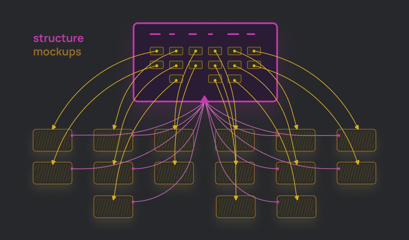 An interactive system that allows the client to simultaneously see the overall structure and be able to switch to the specific mockup. At the same time, the mockups were linked into the prototype. This helped to save time and effort on preparing scripts for internal testing.